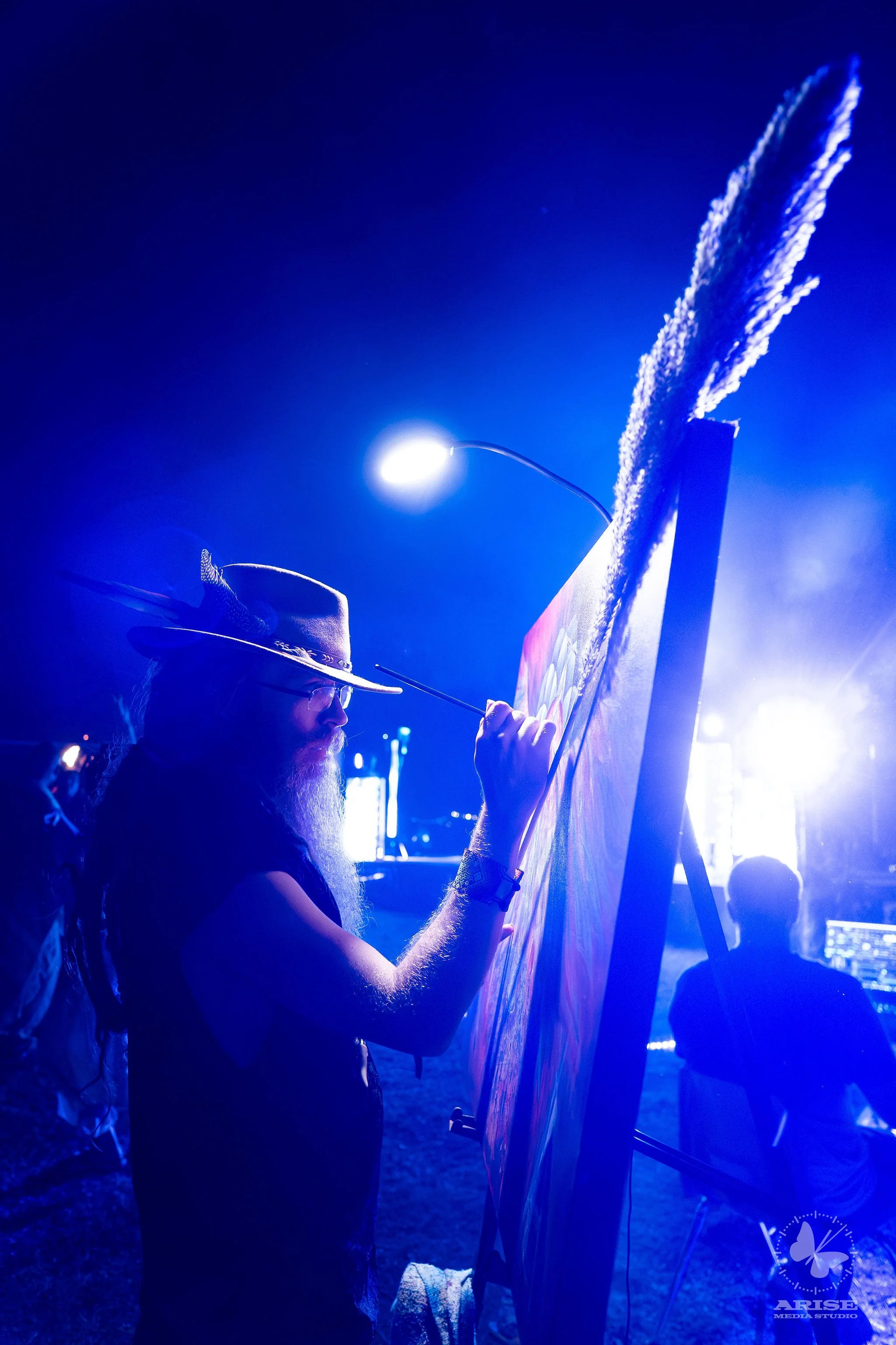 My work is a devotional act — a dialogue with spirit, light, and mystery. Through large-scale murals, fine art paintings, and live performance, I explore the intersection of beauty, consciousness, and transformation. Each piece is an invitation: to feel more deeply, to remember what is sacred, and to glimpse the unseen currents moving through our lives.